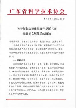 全體理事、會(huì)員:為慶祝中國(guó)共產(chǎn)黨成立100周年,省科協(xié)決定開(kāi)展“永遠(yuǎn)跟黨走,奮進(jìn)新征程”優(yōu)秀征文、攝影、書(shū)法和繪畫(huà)等作品征集展陳活動(dòng)。具體征集要求請(qǐng)見(jiàn)附件。請(qǐng)本會(huì)理事、會(huì)員積極響應(yīng),踴躍投稿。因時(shí)間緊,請(qǐng)大家直接向省科協(xié)投稿;投稿后的“作品信息表”同時(shí)發(fā)本會(huì)郵箱(gdsyxh45@126.com)備案。聯(lián)系人:陳民...