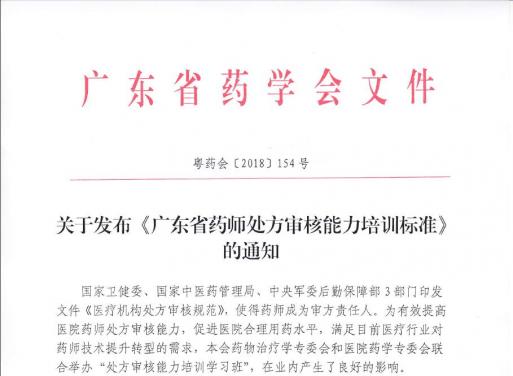 關(guān)于發(fā)布《廣東省藥師處方審核能力培訓(xùn)標(biāo)準(zhǔn)》的通知