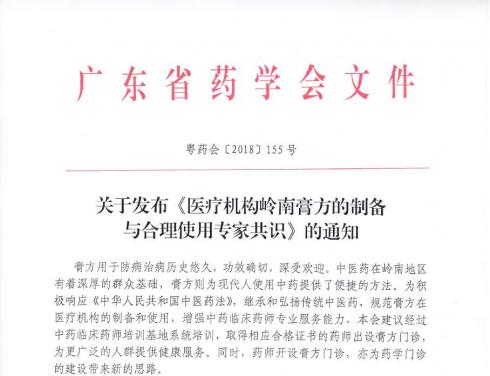 關(guān)于發(fā)布《醫(yī)療機(jī)構(gòu)嶺南膏方的制備與合理使用專家共識(shí)》的通知