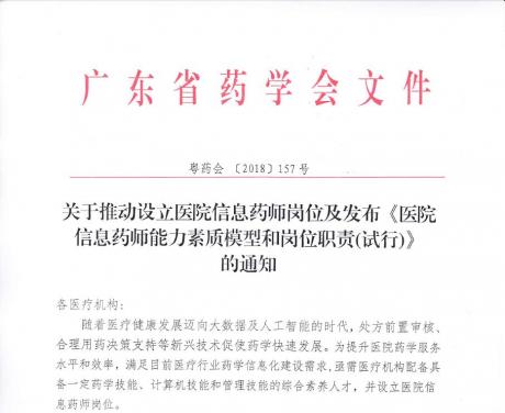 關(guān)于推動(dòng)設(shè)立醫(yī)院信息藥師崗位及發(fā)布《醫(yī)院信息藥師能力素質(zhì)模型和崗位職責(zé)(試行)》的通知
