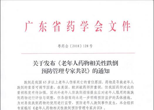 關(guān)于發(fā)布《老年人藥物相關(guān)性跌倒預(yù)防管理專(zhuān)家共識(shí)》的通知