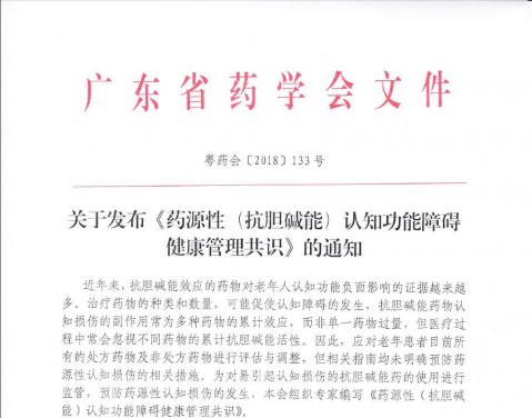 關(guān)于發(fā)布《藥源性(抗膽堿能)認(rèn)知功能障礙健康管理共識(shí)》的通知
