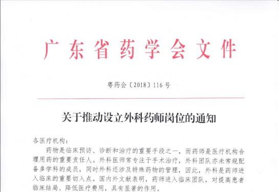 關(guān)于推動設(shè)立外科藥師崗位的通知